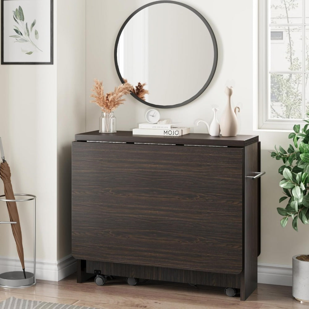 Folding Dining Table, Drop Leaf Dining Table with 6 Wheels and 2-Layer Storage Shelf, Space Saving Dining Table for Small Spaces
